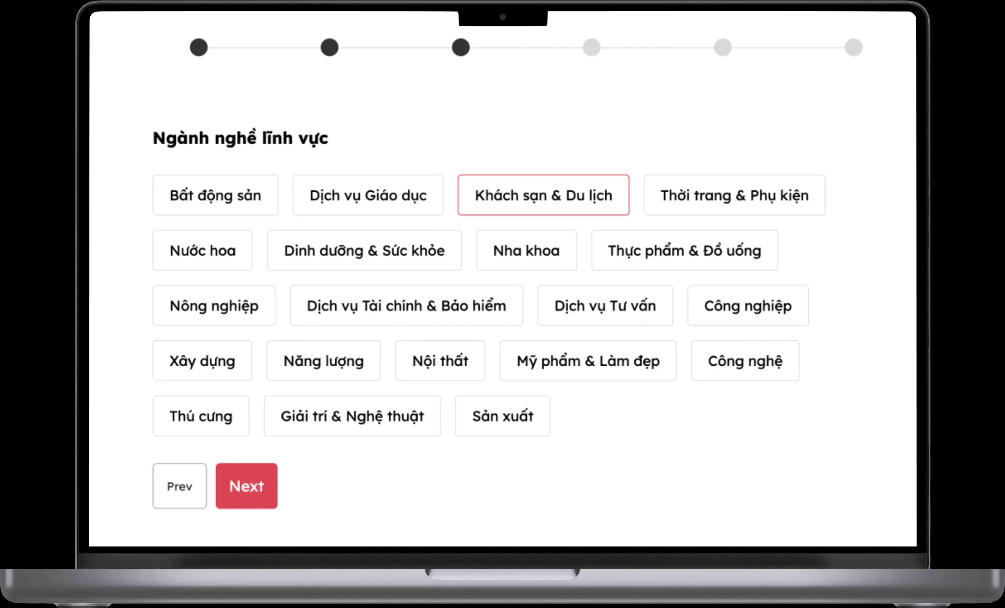 Chọn ngành hàng, mục đích và phong cách, hệ thống sẽ tự động tạo website đầy đủ tính năng cho bạn trong vài phút.