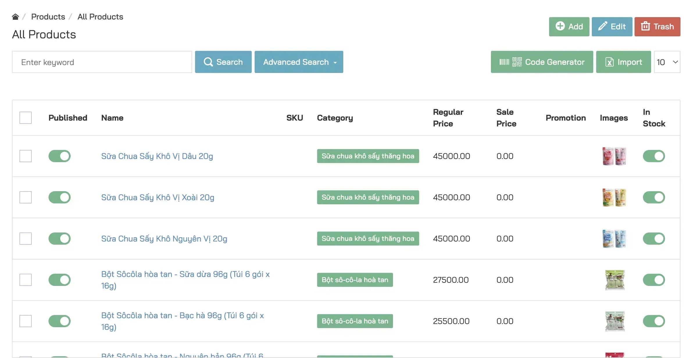 | Gói dịch vụ | E-Commerce, E-Commerce Pro, Tất cả gói Individual 2 |